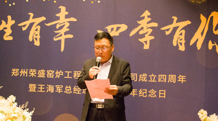 三生有幸,四季有你。10月8日,鄭州榮盛窯爐工程技術有限公司成立四周年慶暨河南榮盛科技集團海軍總經理入司三周年紀念活動在鄭州富力萬達文華酒店隆重舉行。集團董事長楚科奇、總經理海軍、董事長助理張阿麗、工程總監余振鋒、集團管理層人員、生產副總白建偉一行、工程項目部朱廣州經理一行共40余人與數十位特邀嘉賓共同出席了本次活動,一起見證了這一榮耀時刻。