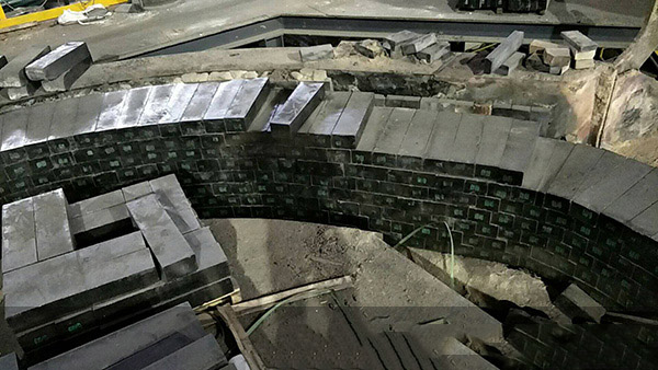 下圖為鄭州榮盛為客戶電爐更換鋁碳磚的施工現(xiàn)場(chǎng):
